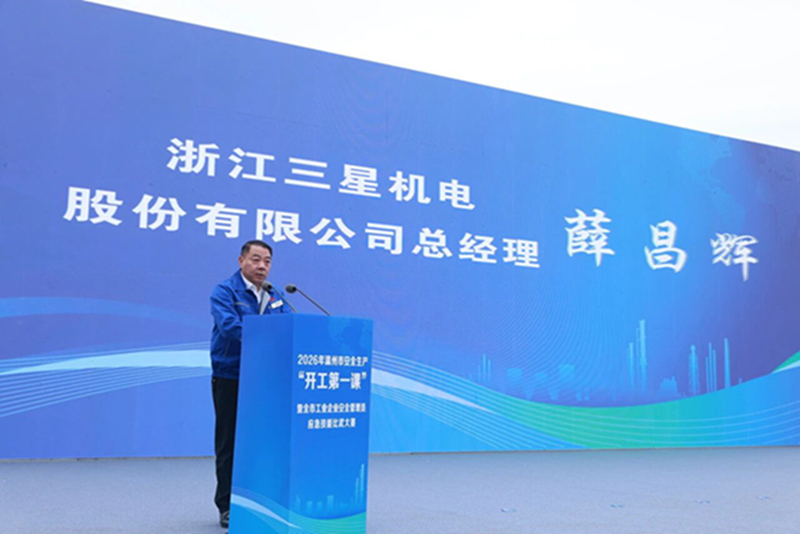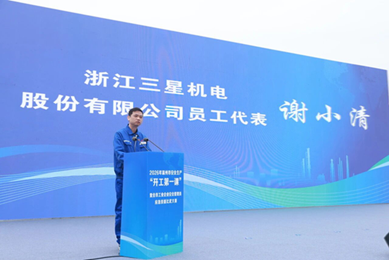 作为本次活动的协办单位和承办场地,浙江三星机电股份有限公司深感荣幸,也倍感责任重大。安全生产是企业发展的基石,更是我们对员工、对社会最庄重的承诺。下一步,我司将继续以“开工第一课”为契机,持续推进安全生产工作智能化、精准化转型,健全双重预防机制,筑牢企业安全防线,为经济社会高质量发展贡献“三星力量”。